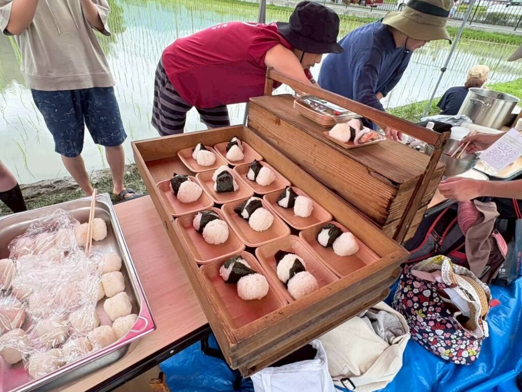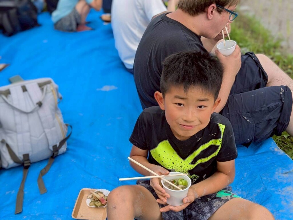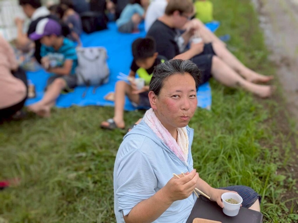 青空の下、田んぼで食べるからなお美味しい!