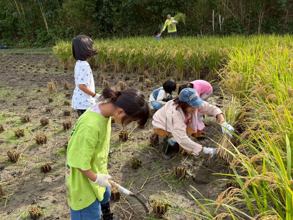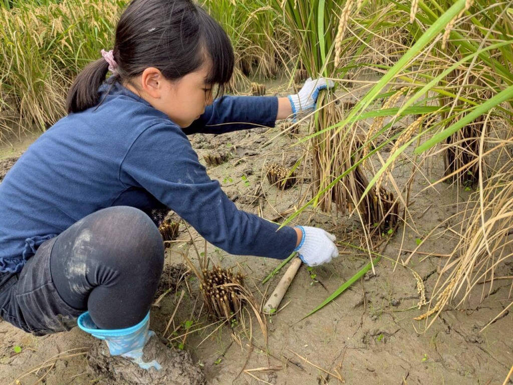 その変化に子ども達は驚きながらも、その一株にザクリと鎌を入れる。